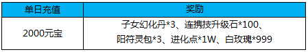 4)活动期间累计充值2500元宝,送魂玉*6000,蕴灵玉*4588,刷新令*250,