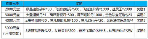 2)活动期间内当天累计充值达到5000元宝,即可获得