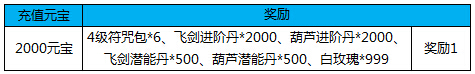 活动期间内当天累计充值达到2000元宝,即可获得折扣礼包:
