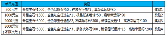 活动期间内当天累计充值达到2000元宝,即可获得: