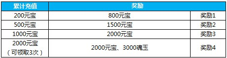 【活动内容】:只要于活动期间内充值达到累计金额,即可额外获得相应奖励