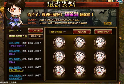 2)点击策划头像射出弓箭可获得道具奖励,暴击可获得多倍奖励。