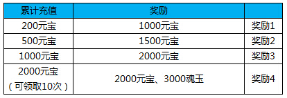 【活动内容】:只要于活动期间内充值达到累计金额,即可额外获得相应奖励