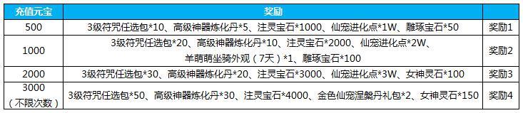 3、小于在活动期间累计充值划账2000元宝,则可获得【奖励1】+【奖励2】+【奖励3】