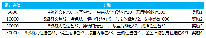 3、小于在活动期间累计充值划账20000元宝,则可获得【奖励1】+【奖励2】+【奖励3】