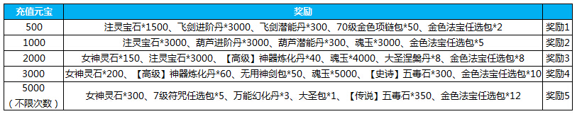 3、小于在活动期间累计充值划账2000元宝,则可获得【奖励1】+【奖励2】+【奖励3】