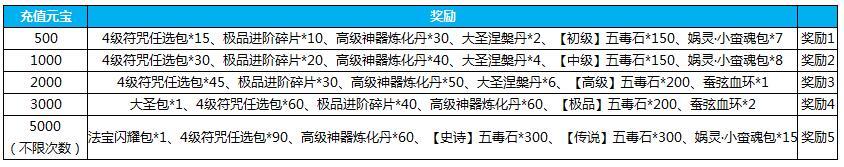 1、活动奖励3000元宝档次可以重复领取,其他均只能领取1次
