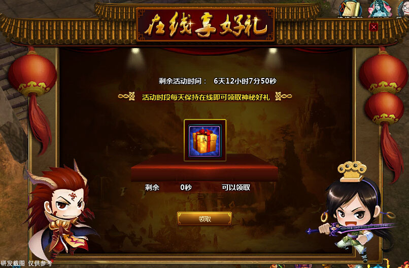 1)玩家在活动期间保持在线,根据在线时长即可领取在线礼包。