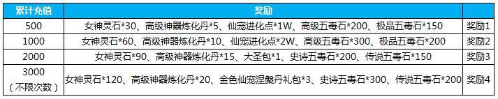 【活动内容】:活动期间内充值达到累计金额,即可额外获得相应奖励