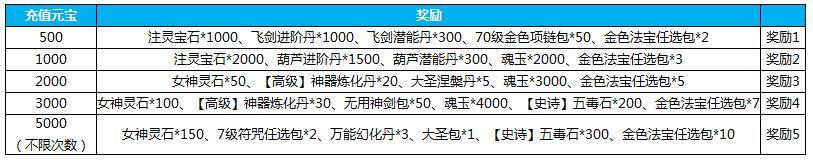 4)活动期间累计充值2500元宝,送魂玉*6000,升星宝石*5888,铭刻礼包*12,图纸礼包*2,似锦大礼包*2