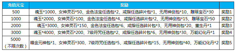 【活动内容】:活动期间内充值达到累计金额,即可额外获得相应奖励