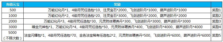 1、活动奖励3000元宝档次可以重复领取,其他均只能领取1次