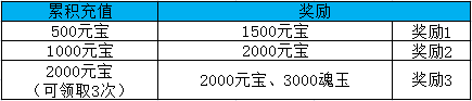 【活动内容】:只要于活动期间内充值达到累计金额,即可额外获得相应奖励
