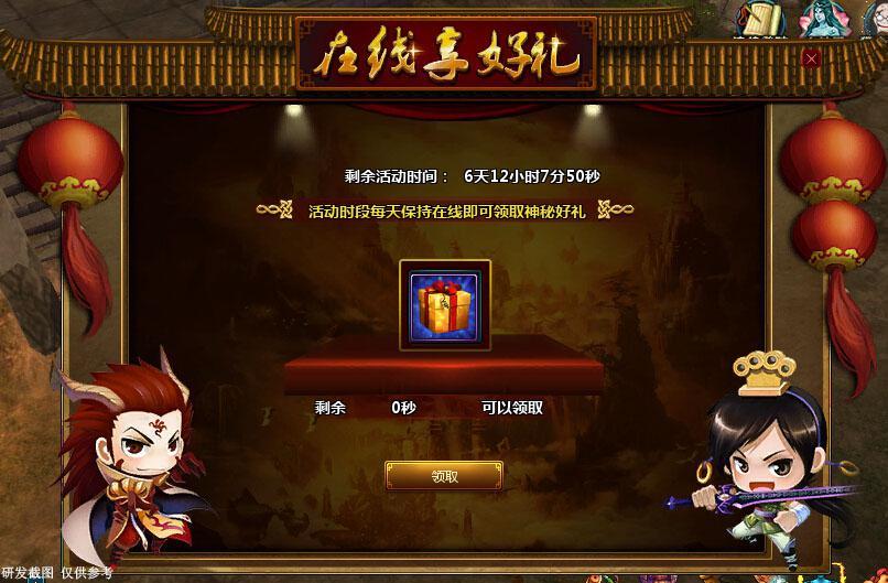 1) 玩家在活动期间保持在线,根据在线时长即可领取在线礼包。