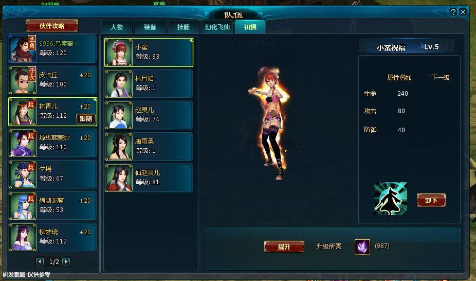 2)祝福技能的等级随着祝福伙伴的幻化飞仙等级的变化而变化。