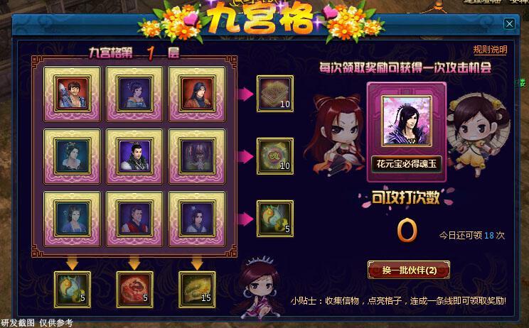3)点亮一个九宫格可进入下一层,层数越高,boss掉率魂玉的机会越大,元宝攻打的花费越低。